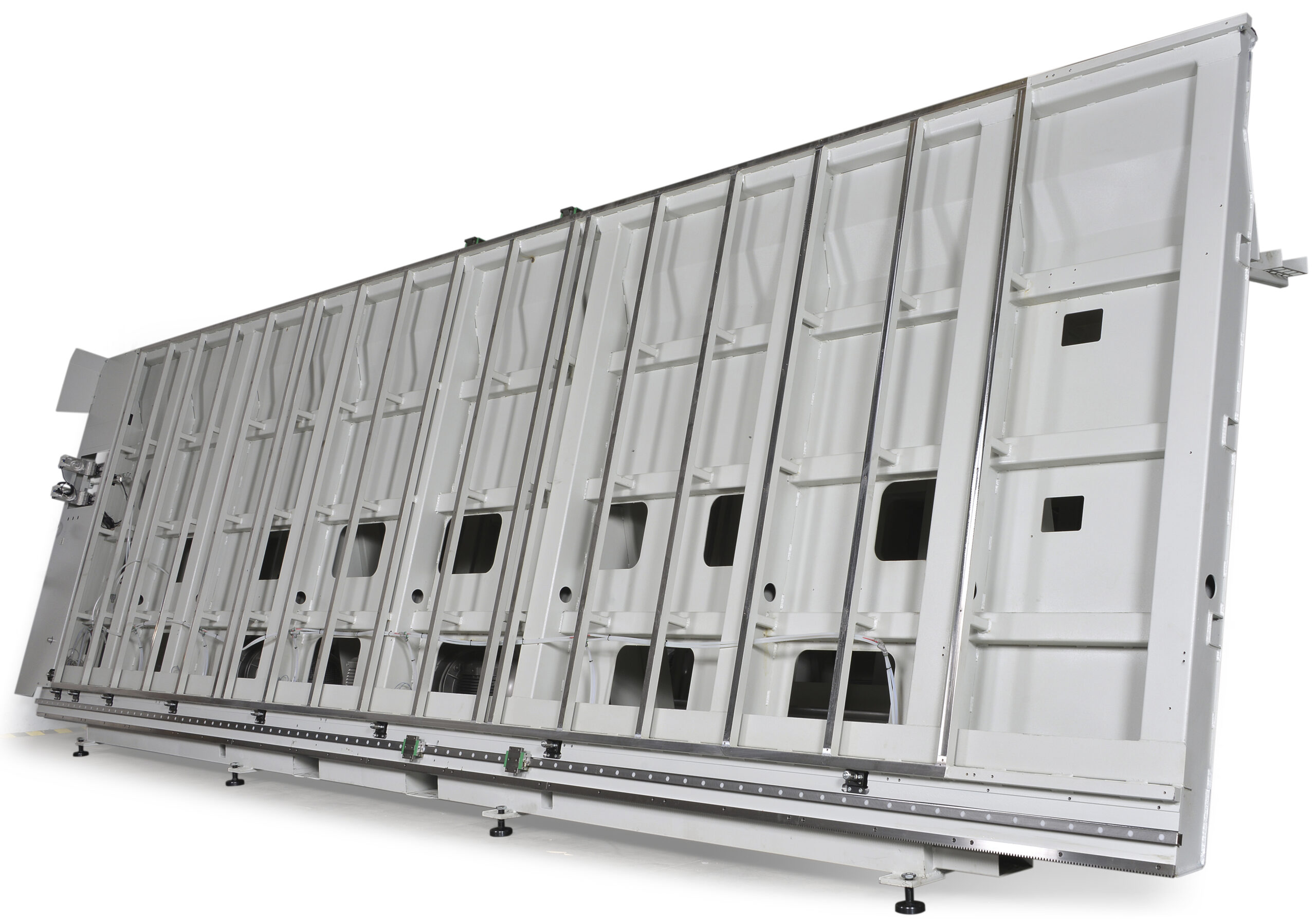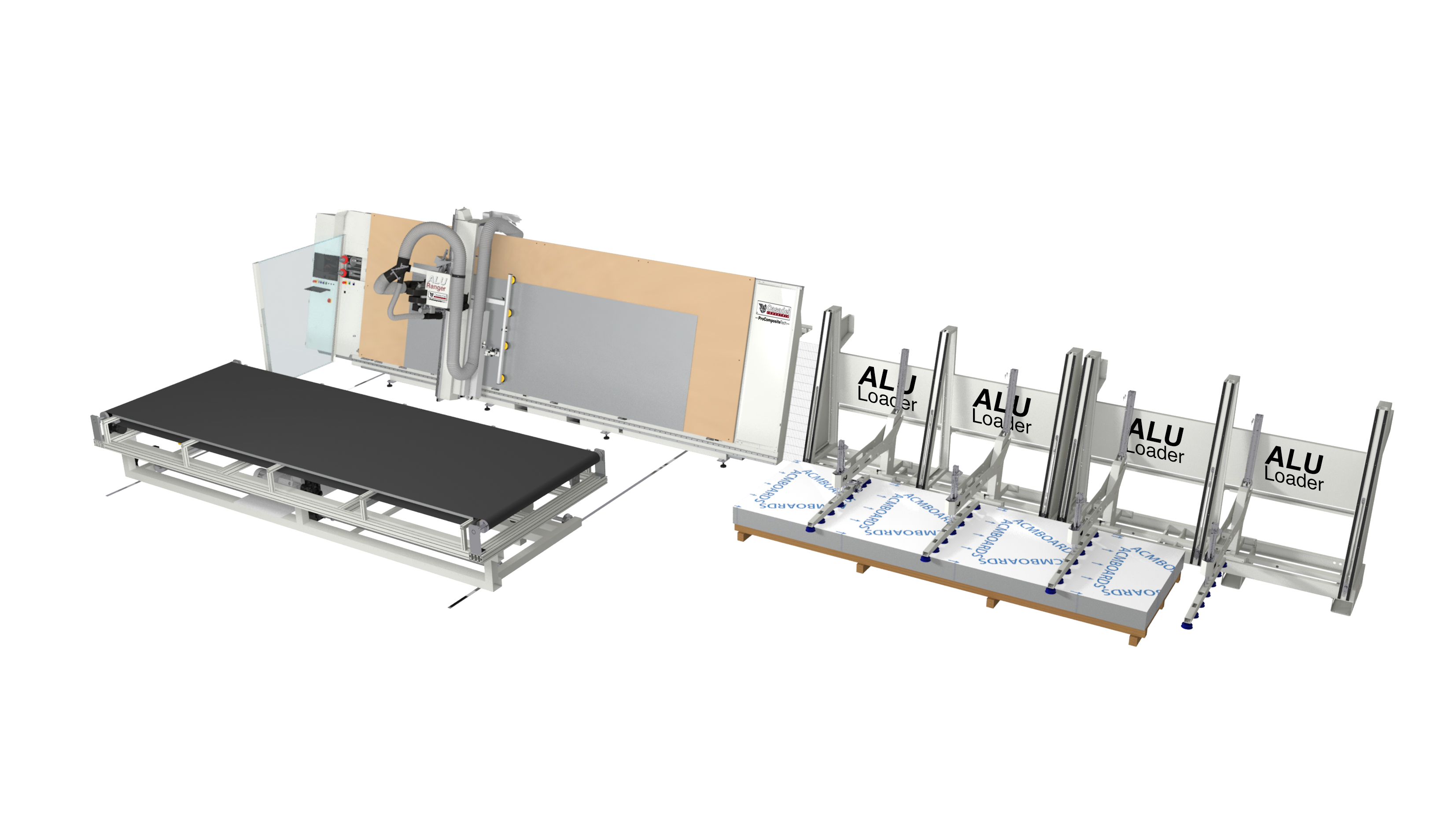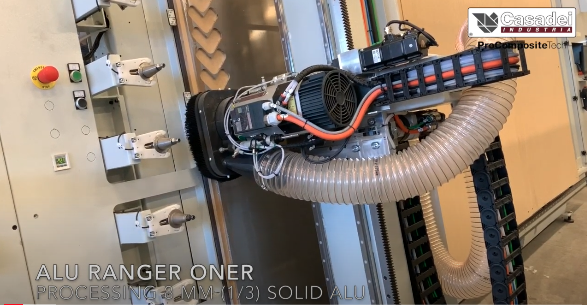 The high productivity of the Alu Ranger CNC, already guaranteed by the combination of the best tools, suitable for each different material, can be increased thanks to Alu Loader, the patented automatic panel loading and positioning system without an operator, and thanks to the possibility of also automatically controlling unloading, with Off Loader, the patented vacuum table covered by a breathable cloth. The integrated work cell-loading, processing, unloading-can be controlled and supervised by a single operator.