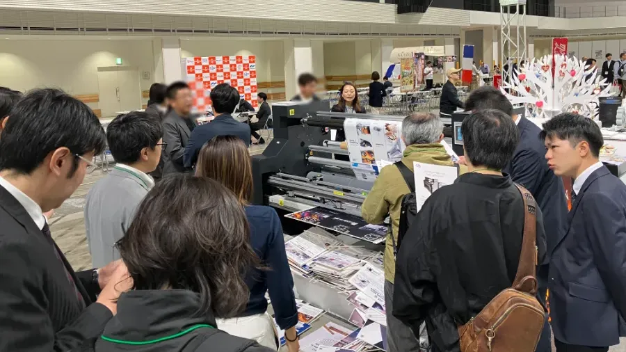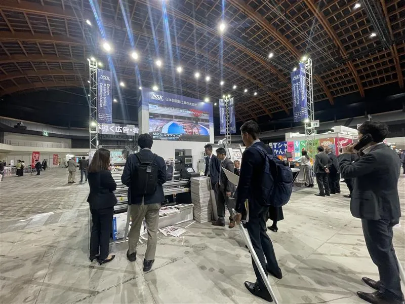 NSKブースでは、本邦初公開となるサインボードの作成に画期的な改善を行う「Board Lami & Cutter」の実機を展示し NSKソリューション紹介のポスターボードを大量製造するデモンストレーションで来場者に大きいインパクトを与えました。