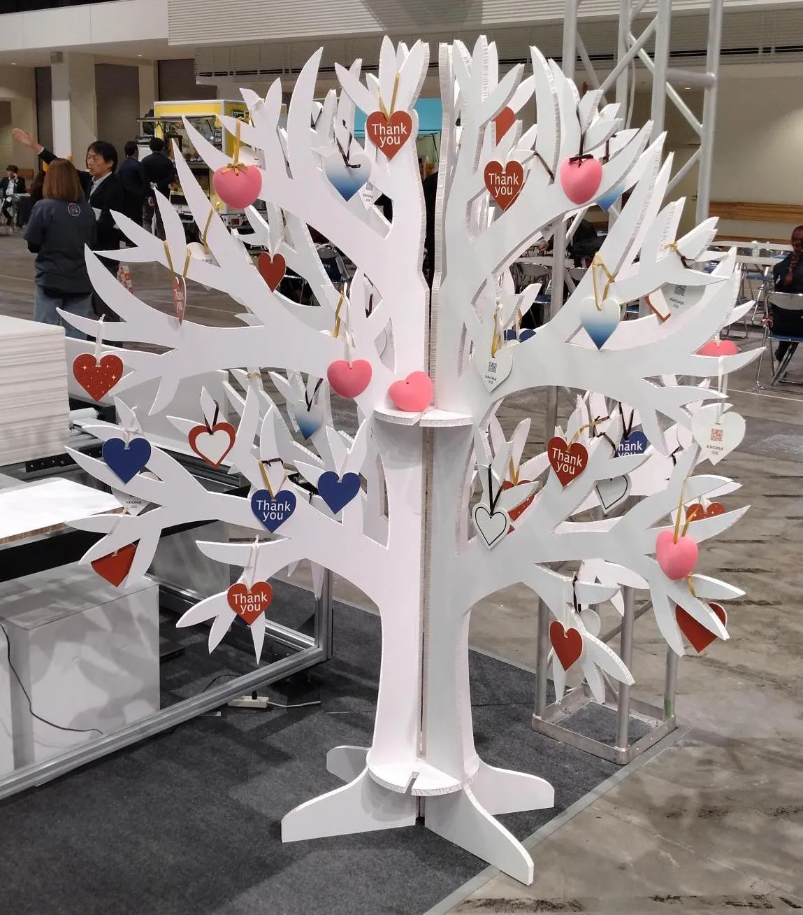ハート型にカットしたボードをRe-boardで作成したツリーに飾ってブースを象徴するシンボルの1つとなりました。