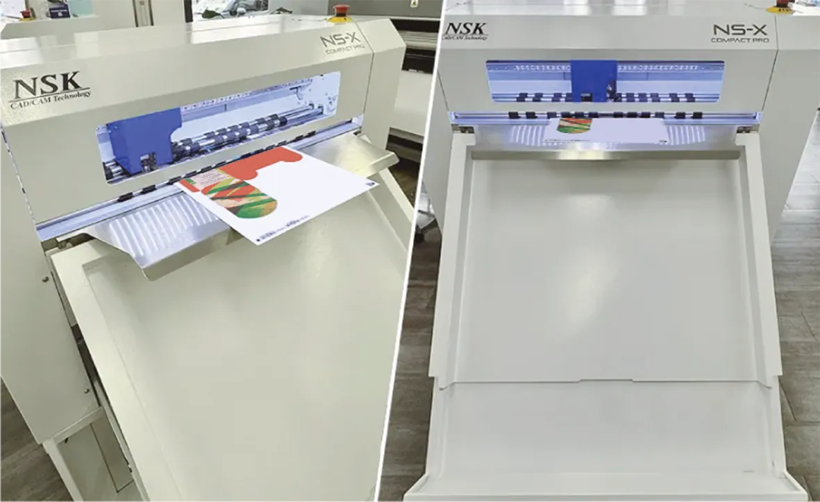 デジタル加工機としては初めて抜木型レベルの罫線加工が可能となったコンパクトカット機NS-X Compact PRO。